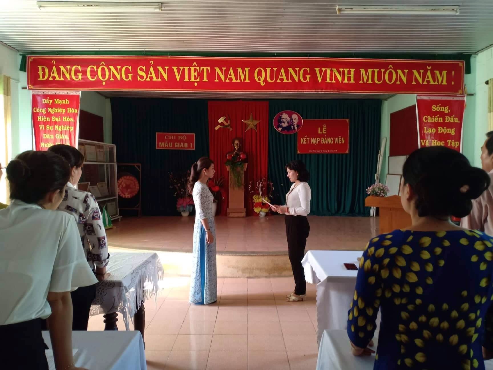 Ngày 19/5/2019, hòa trong không khí nô nức kỷ niệm 129 năm ngày sinh Chủ tịch Hồ Chí Minh (19/5/1890 – 19/5/2019), được sự đồng ý của Đảng ủy cấp trên, Chi bộ Mẫu giáo 1 tổ chức lễ kết nạp Đảng viên đối với quần chúng ưu tú Nguyễn Thị Nguyên.