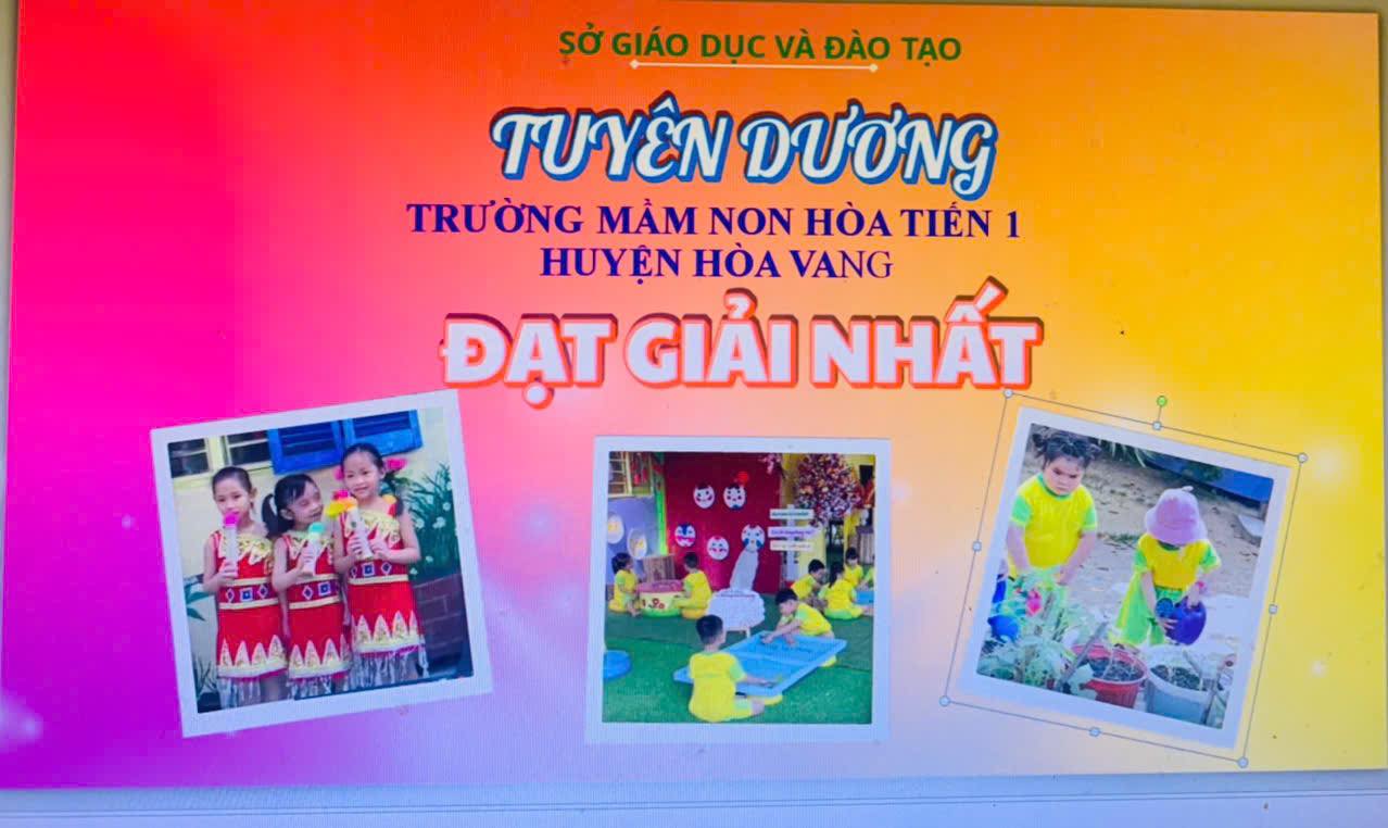 Sáng nay, trong buổi Tổng kết hội thi “Xây dựng môi trường giáo dục phát huy tính tích cực cho trẻ mầm non” do Sở giáo dục và đào tạo TP. Đà Nẵng tổ chức, trường mầm non Hoà Tiến 1 vinh dự được trao giải trong Hội thi.