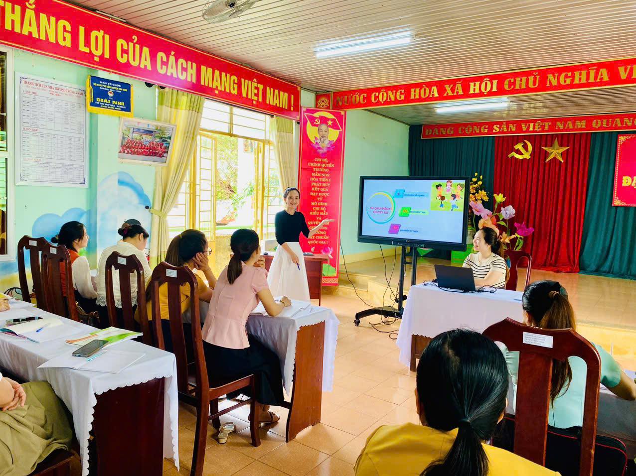 Qua một ngày làm việc sôi nổi, nghiêm túc và hiệu quả, giáo viên đã cùng chia sẻ về những nội dung của chuyên đề, khắc phục được những vấn đề còn gặp khó khăn trong quá trình chăm sóc giáo dục trẻ. Từ đó giúp giáo viên tích lũy thêm kiến thức, kỹ năng chuyên môn nghiệp vụ, tăng sự chuyên nghiệp và giúp giáo viên tự tin hơn trong giải quyết vấn đề để nâng cao chất lượng CSGD trẻ tại trường Mầm non.