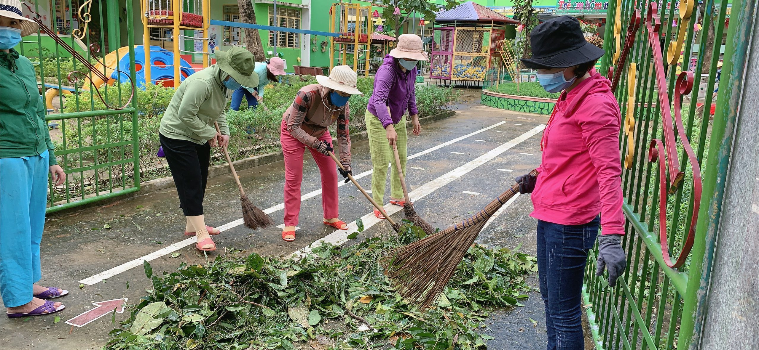 CBGVNV TRƯỜNG MẦM NON HOÀ TIẾN 1 THỰC HIỆN DỌN VỆ SINH MÔI TRƯỜNG ,KHẮC PHỤC HẬU QUẢ SAU BÃO SỐ 9 GÂY RA