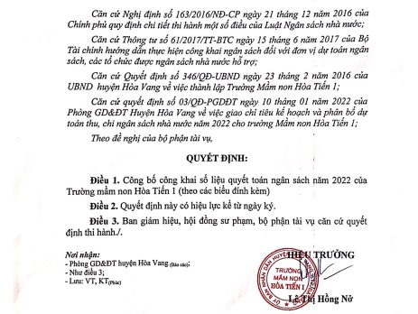 CÔNG KHAI QUYẾT TOÁN NGÂN SÁCH NĂM 2022