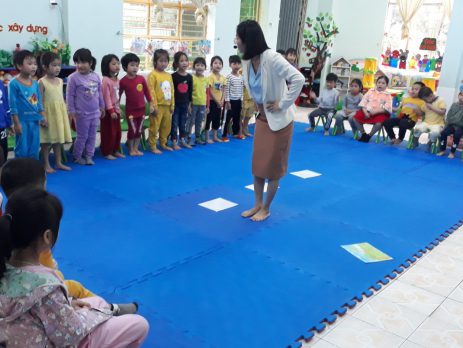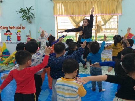 Hoạt động ngoại khóa lớp Nhỡ 2 * Giờ học aerobic: * Giờ học anh văn: Nguồn: MN Hoà Tiến 1