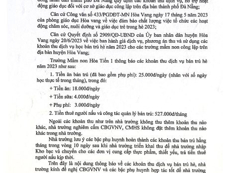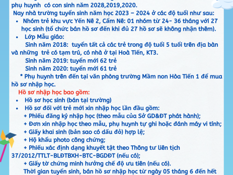 rường Mầm non Hoà Tiến 1 kính thông báo đến quý phụ huynh về việc tuyển sinh năm học 2023 - 2024 [...]