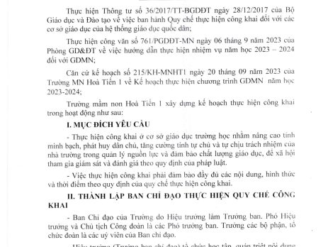 Kế hoạch thực hiện công khai trong nhà trường theo Thông tư 36/2017/TT-BGDĐT năm học 2023 – 2024