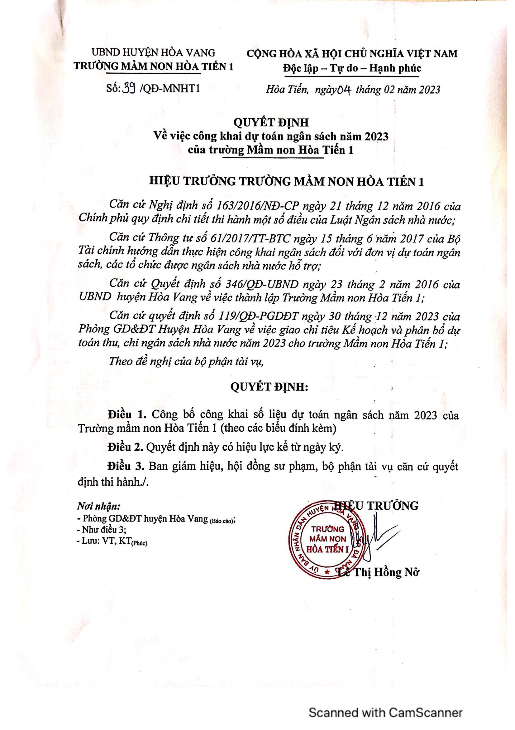 CÔNG KHAI DỰ TOÁN NGÂN SÁCH NĂM 2023