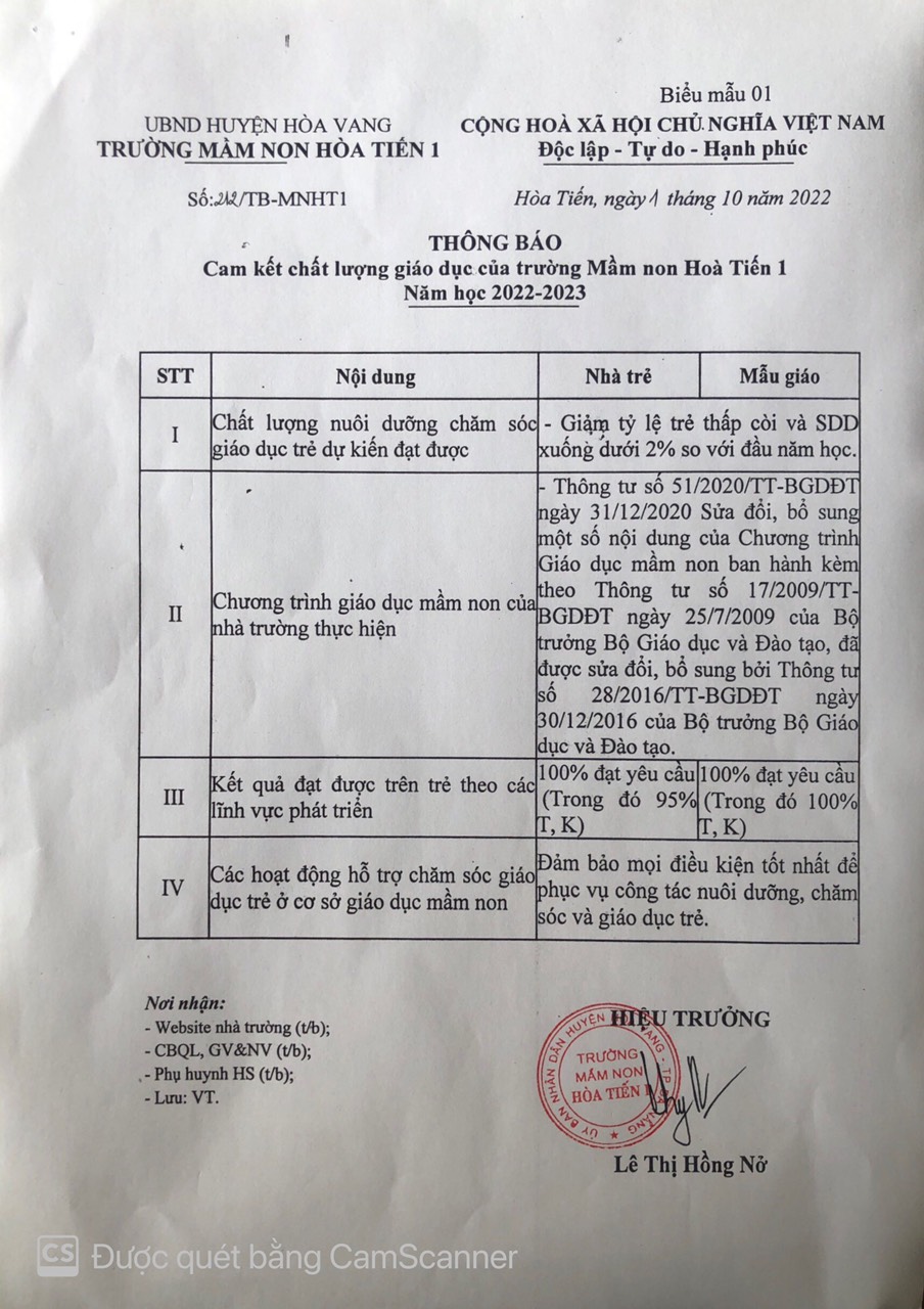 UBND HUYỆN HÒA VANG TRƯỜNG MẦM NON HÒA TIẾN 1 CỘNG HÒA XÃ HỘI CHỦ NGHĨA VIỆT NAM Độc lập – Tự... read more