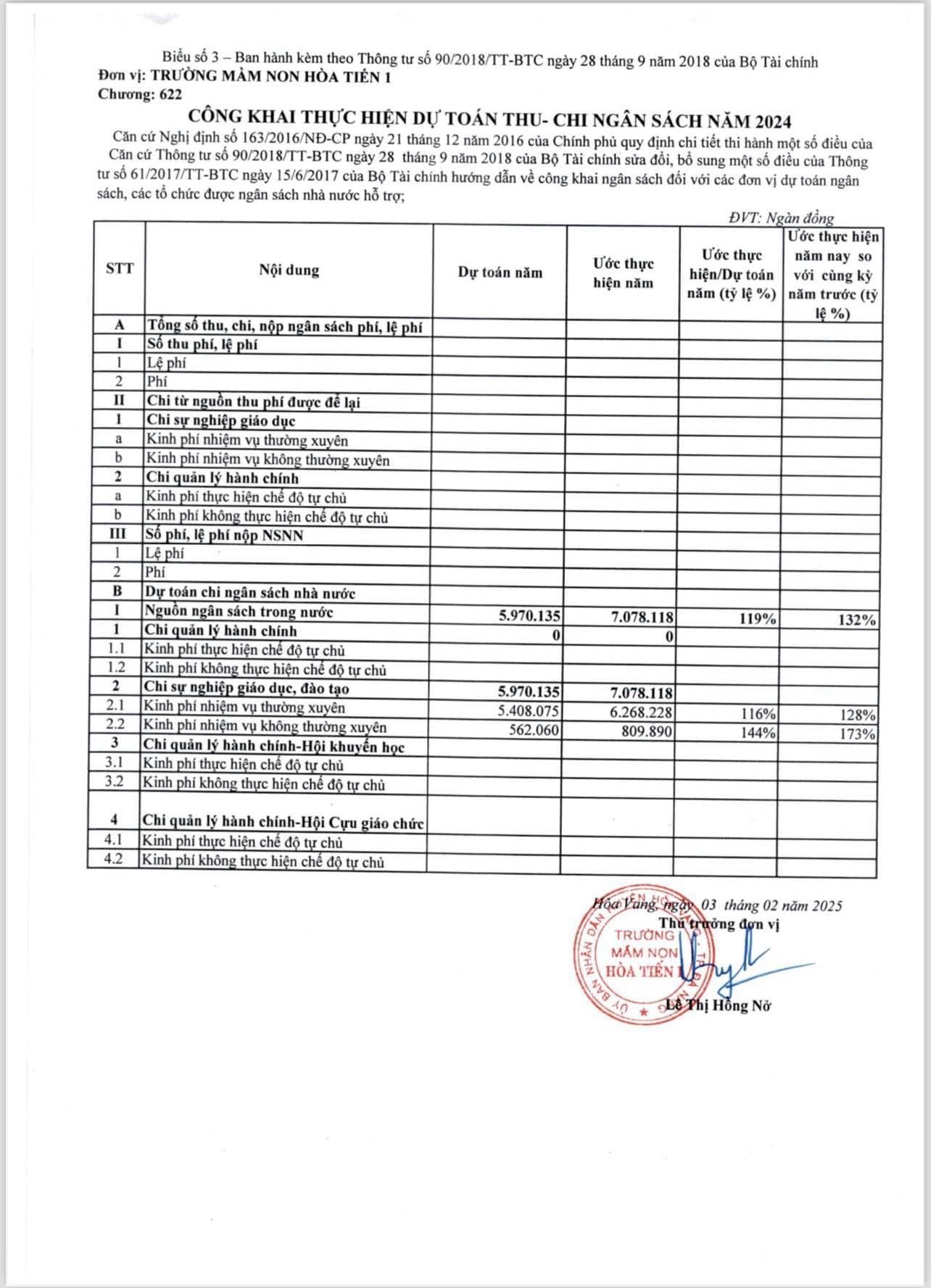 CÔNG KHAI THỰC HIỆN DỰ TOÁN THU- CHI NGÂN SÁCH NĂM 2024