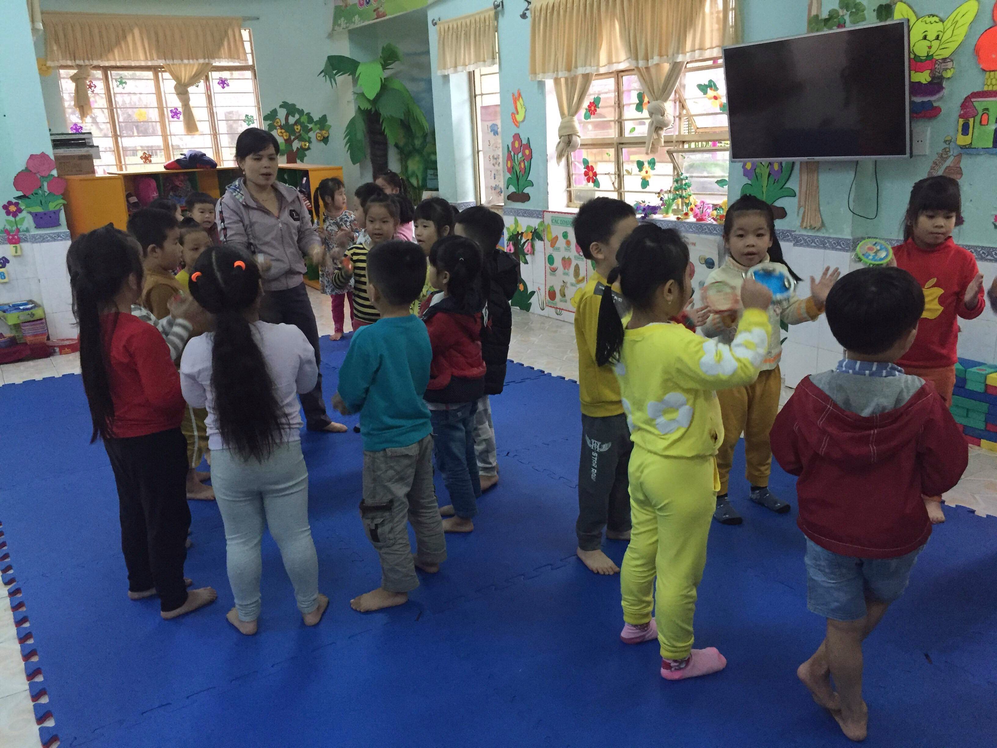 – Cô hát lần 2, trẻ hưởng ứng theo lời bài hát cùng cô.