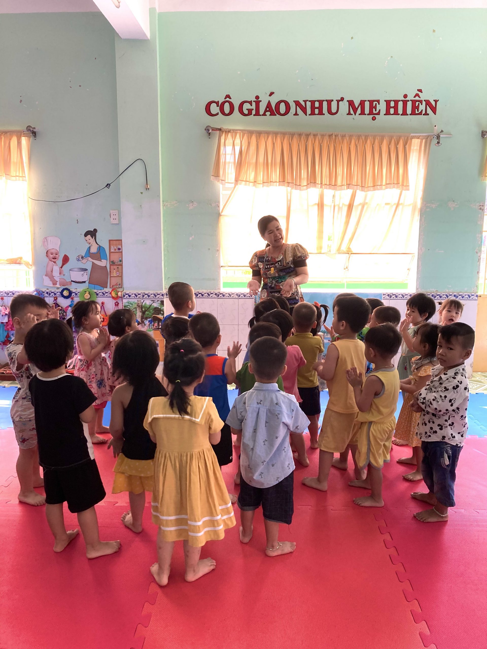 Cô cùng trẻ hát bài hát mở đầu cho hoạt động