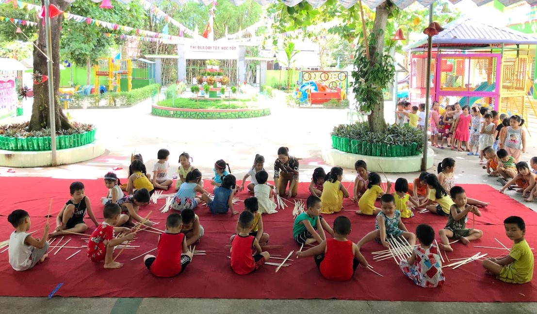 HOẠT ĐỘNG THAM GIA TRẢI NGHIỆM NGHỀ ĐAN RỔ CỦA CÁC BÉ MẪU GIÁO LỚN VÀ MẪU GIÁO BÉ