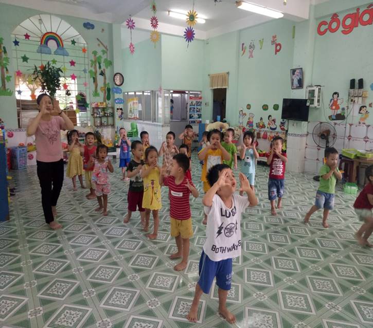– Cô mời 2 – 3 trẻ lên thực hiện cho cả lớp xem