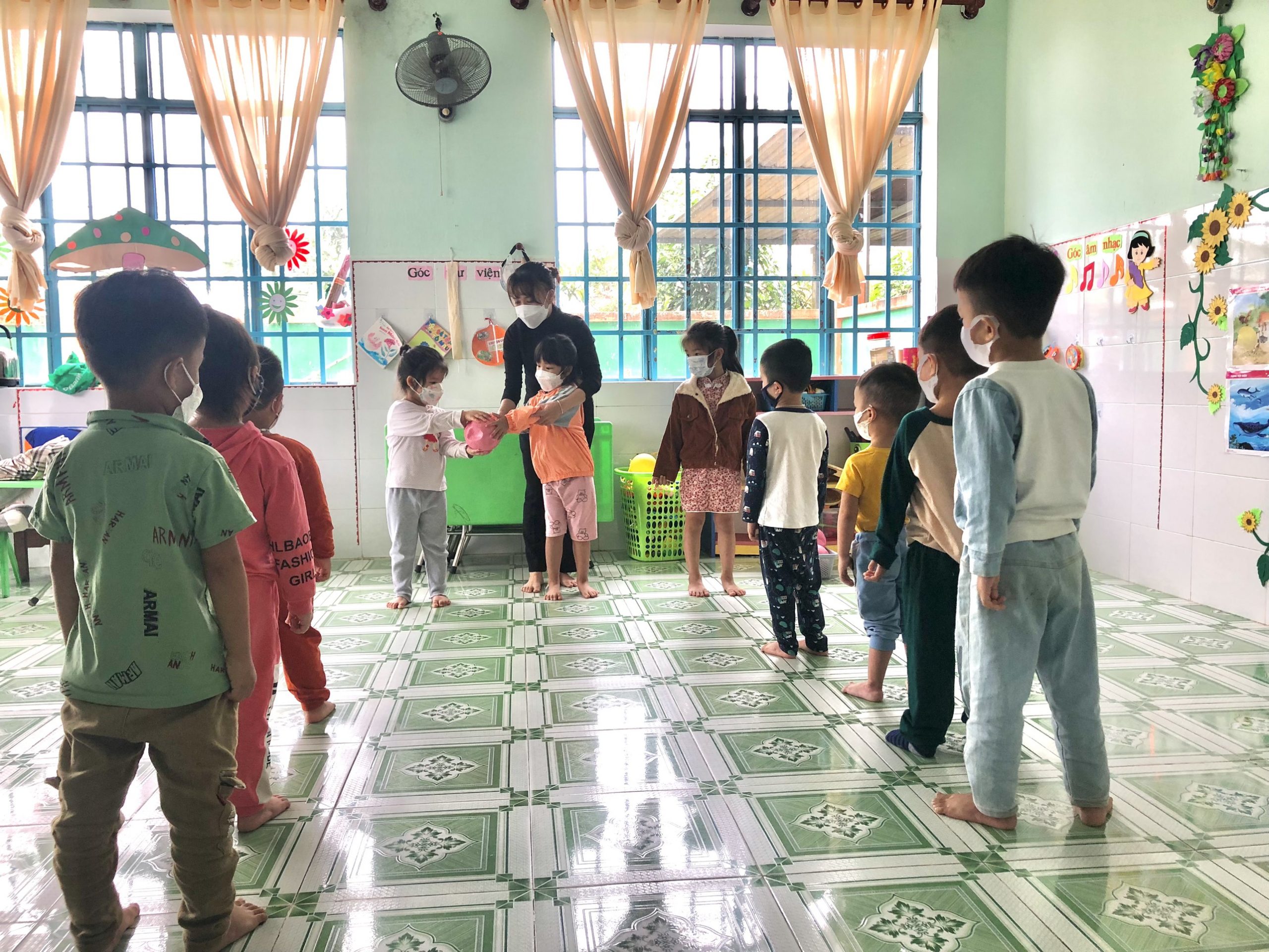 Các bé lớp nhỡ Bắc An rất thích thú tham gia vào hoạt động chuyền bóng 2 bên theo hàng ngang. Các bạn cùng quan sát các bé tập nhé!
