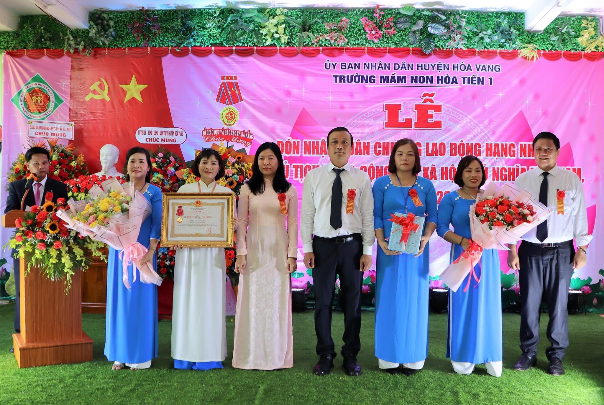 Ngày 28-5, Trường Mầm non Hòa Tiến 1 tổ chức đón nhận Huân Chương Lao Động Hạng Nhất do Chủ tịch Nước Cộng Hòa Xã Hội Chủ Nghĩa Việt Nam. Phần thưởng cao quý đánh dấu một chặng đường dài trong suốt hơn 22 năm qua của Tập thể nhà trường. Có được thành quả hôm nay, nhà trường luôn có sự quan tâm chỉ đạo sâu sát của Sở GD&ĐT, Huyện ủy – HĐND – UBND – UBMTTQ VN huyện Hòa Vang, Phòng GD&ĐT huyện Hòa Vang, Đảng ủy – HĐND – UBND – UBMTTQ VN xã Hòa Tiến, đặc biệt là sự phối hợp chặt chẽ của các bậc phụ huynh của nhà trường; Tập thể nhà trường đã khắc phục mọi khó khăn thử thách, miệt mài trong chăm sóc nuôi dưỡng giáo dục trẻ Mầm non, phấn đấu không ngừng trong tất cả các lĩnh vực của ngành. Buổi lễ đón nhận Huân Chương Lao Động Hạng Nhất đã diễn ra thành công tốt đẹp!!!