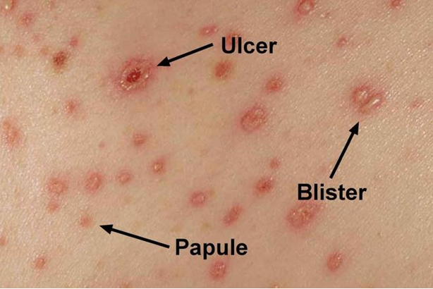+ Đặc điểm của các mụn nước đó là chúng mọc làm nhiều đợt khác nhau. Do đó, cùng trên 1 vùng da, có thể thấy nhiều dạng khác nhau: hoặc ban đỏ, hoặc mụn nước trong, mụn nước đục, mụn đóng vẩy… trong cùng 1 thời gian