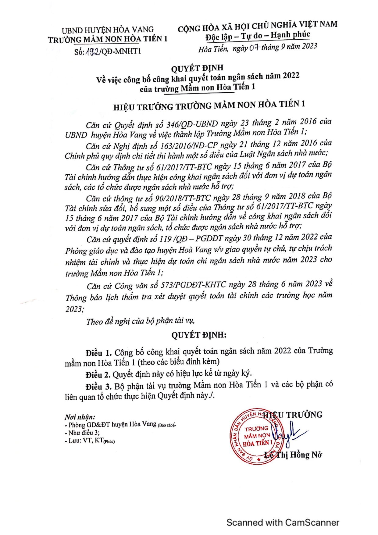 QUYẾT ĐỊNH CÔNG BỐ CÔNG KHAI QUYẾT TOÁN NGÂN SÁCH NĂM 2022