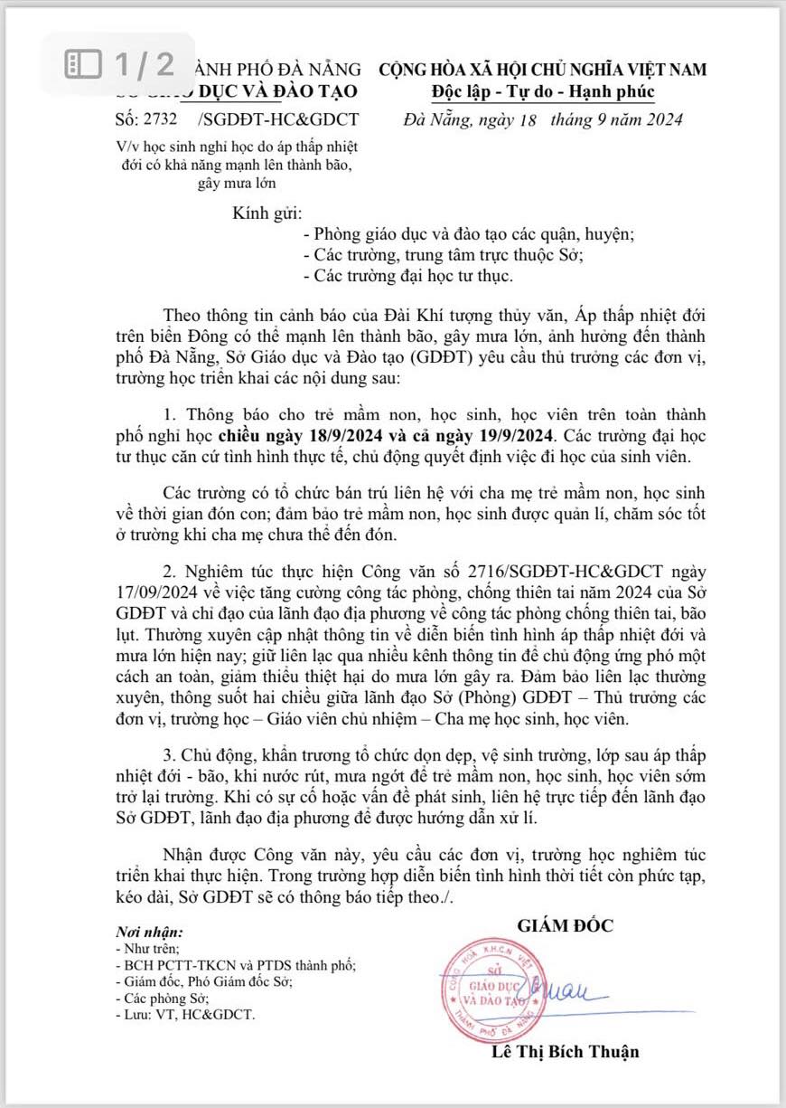 Thông báo nghỉ học do áp thấp nhiệt đới